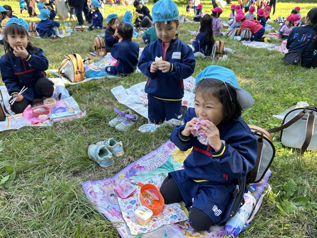 先日は、秋晴れの日に昭和記念公園、子どもの森とみんなの原っぱに行ってきました。紅葉した木々を眺めつつ、ドングリや赤く紅葉した落ち葉をそれぞれに集めては、持ち帰ったり、クラスごとに作品にしたりしました。何より、お弁当の時間がみんな一番の楽しみで、お弁当のふたを開けた時のお友だちそれぞれの笑顔は、うれしさでいっぱいの顔、顔、顔でした。そこに、とてもあったかい親子の愛情をたくさん、たくさん感じました。離れていても感じる親の愛、お弁当、いいもんですね。