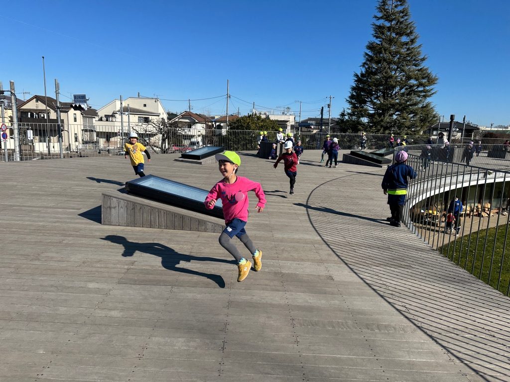 寒い日が続き、冷たい風が吹く中、子どもたちは屋根の上で縄跳びや鬼ごっこをしながら、元気いっぱいに走り回っています。まさに『子どもは、風の子』そのものですね。そして、大人はというと、暖房やストーブで温かさを求める時間が多い毎日、こちらもまさに『大人は火の子』そのものですね。