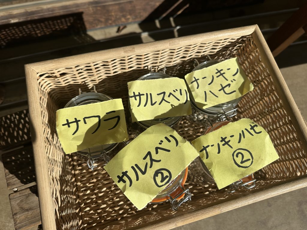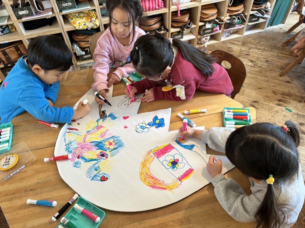 今、子どもたちは、園内の樹木に実った木の実を集めては、それぞれの樹木の名前が書いてあるビンに木の実を集めるお仕事に夢中です。子どもたちの育ちの特徴である“何かを集めこと”を活用し、樹木の名前や特徴、どこにその木の実がたくさんあるか等々を知る、あそびを通じた学びになっています。こういうあそびを通じて自ら掴んだことは結構、潜在意識に残るものです。あそびを通じて得たたくさんの体験が五感をみがき、基礎になり、知識につながる中、字が読めるようになったお友だちは、さらに理解を深めて、木の実集めをしていきます。幼児期の育ち、あそびが学び、そのまん中にあるのは、何かを見つけるおもしろさ、何かを集めるおもしろさ等々の“おもしろがる力”だと思っています。みなさんは、幼い頃、何を集めていましたか?