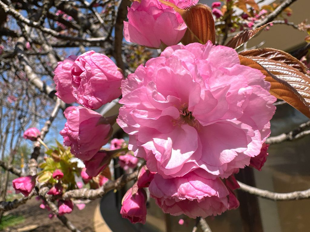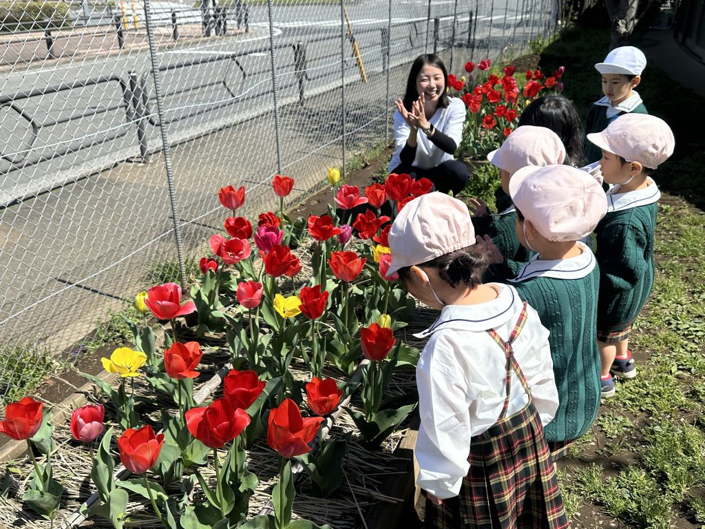 うららかな春、ご入園やご進級したお友だちのこれからの様々な出会いを一緒に喜んでくれているようにチューリップ、しだれ桜、八重桜等々が咲いています。さらに、園庭のけやきにも若葉が芽吹き、新緑がまぶしく輝いています。