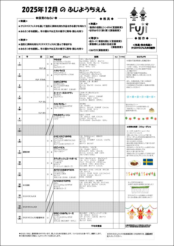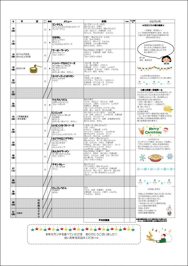 2025.12月の月予定とランチ